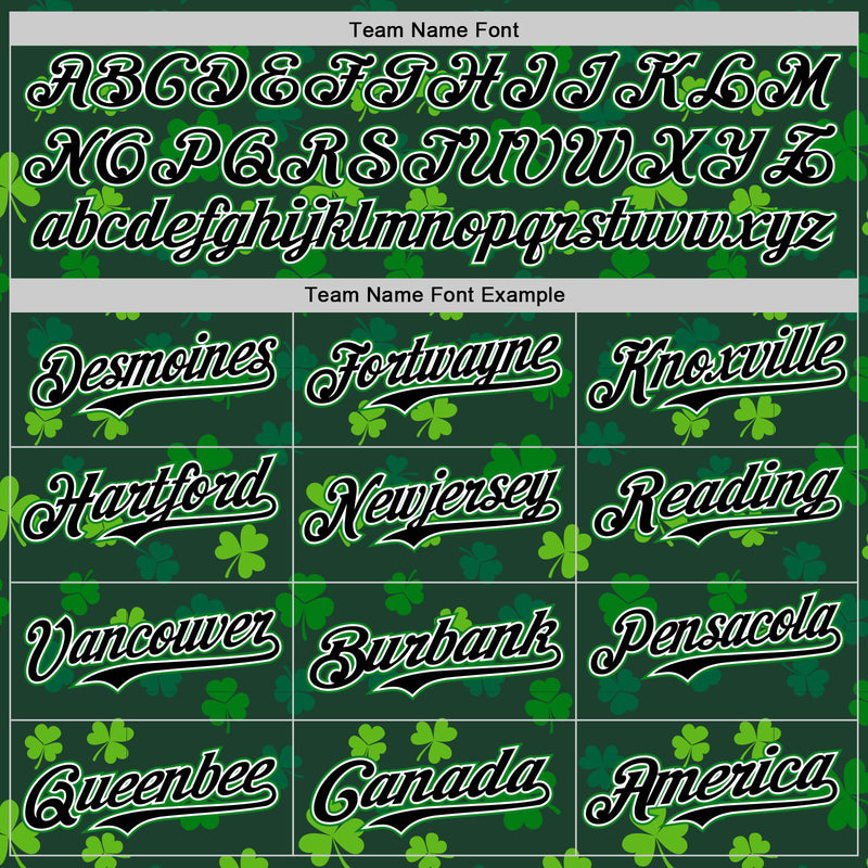 Custom Black White-Grass Green 3D Pattern Design Boston Cityscape Shamrock Authentic St. Patrick's Day Baseball Jersey
