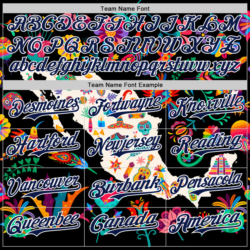 Custom Black Navy-White 3D Mexico Map With Tropical Plant And Animal Authentic Baseball Jersey