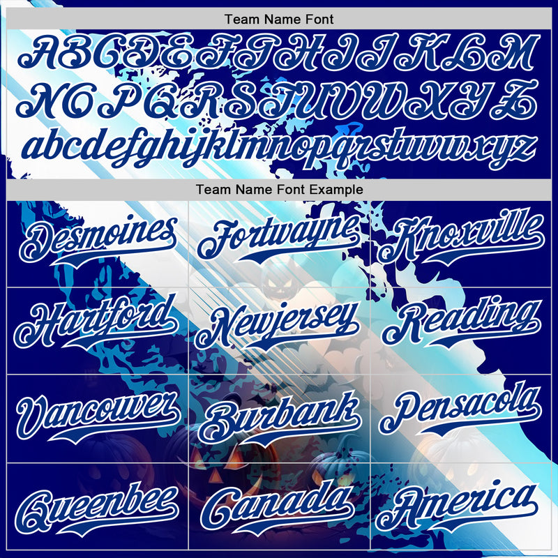 Custom Blue Royal-White 3D Halloween Spooky Pumpkin Bat Authentic Baseball Jersey