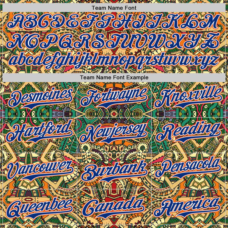 Custom Green Royal White-Orange 3D Pattern Design Burner Costumes Exotic Authentic Baseball Jersey