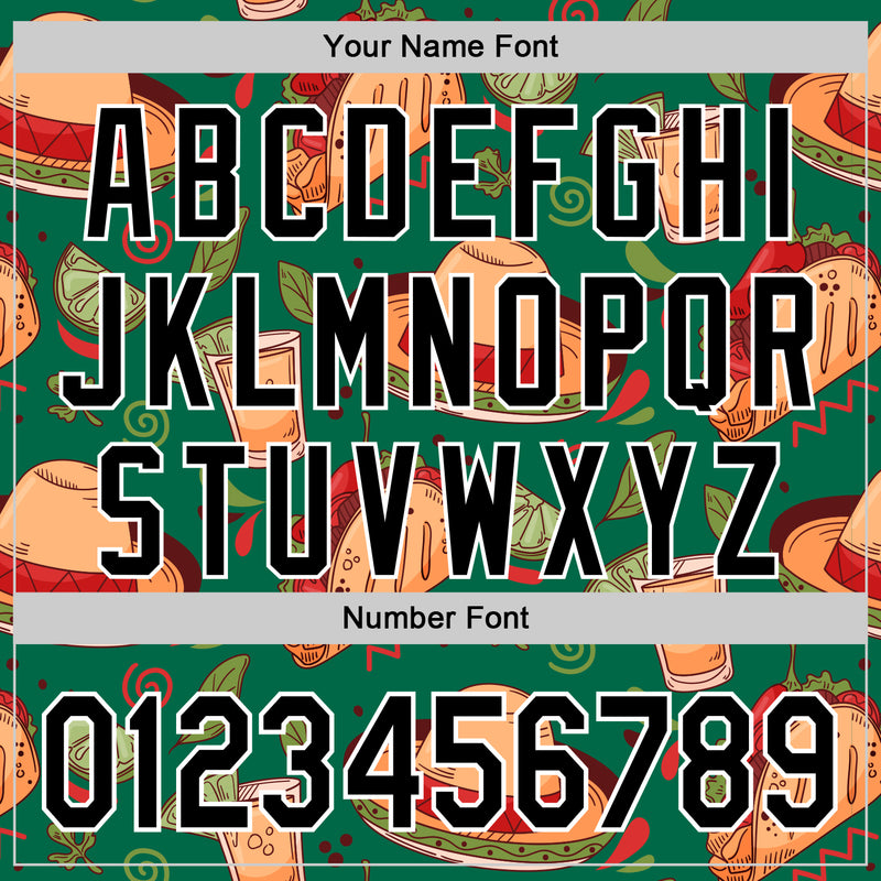 Custom Kelly Green Black-White 3D Mexican Festival Tacos And Sombrero Cinco de Mayo Authentic Baseball Jersey