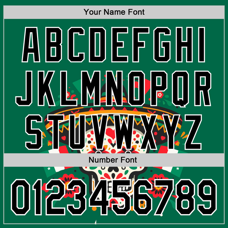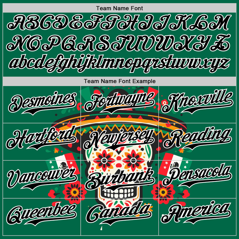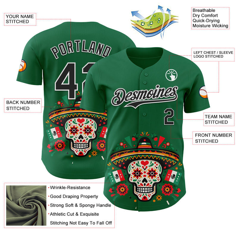 Custom Kelly Green Black-White 3D Mexican Festival Flag Skull With Sombrero Cinco de Mayo Authentic Baseball Jersey