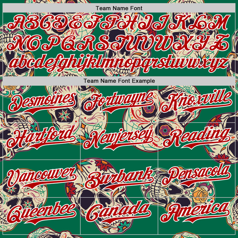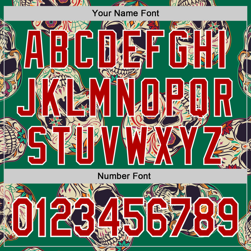 Custom Kelly Green Red-White 3D Mexican Skull Authentic Baseball Jersey