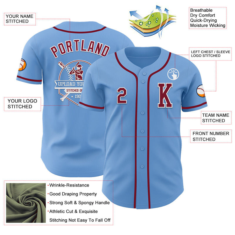 Custom Light Blue Crimson-White Authentic Baseball Jersey