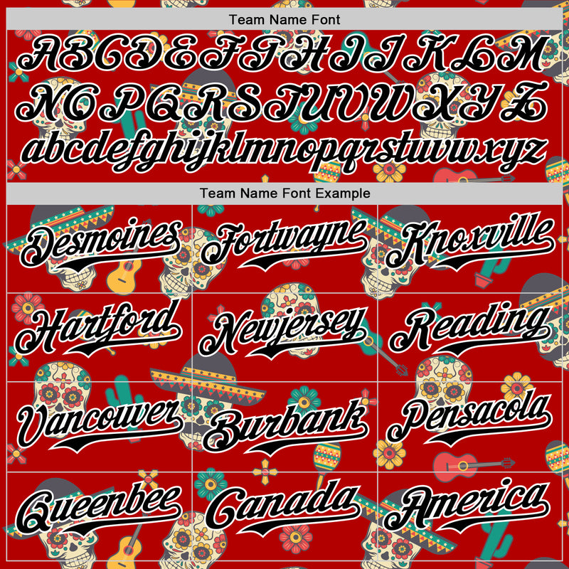 Custom Red Black-White 3D Mexican Festival Cactus Skull With Sombrero Cinco de Mayo Authentic Baseball Jersey