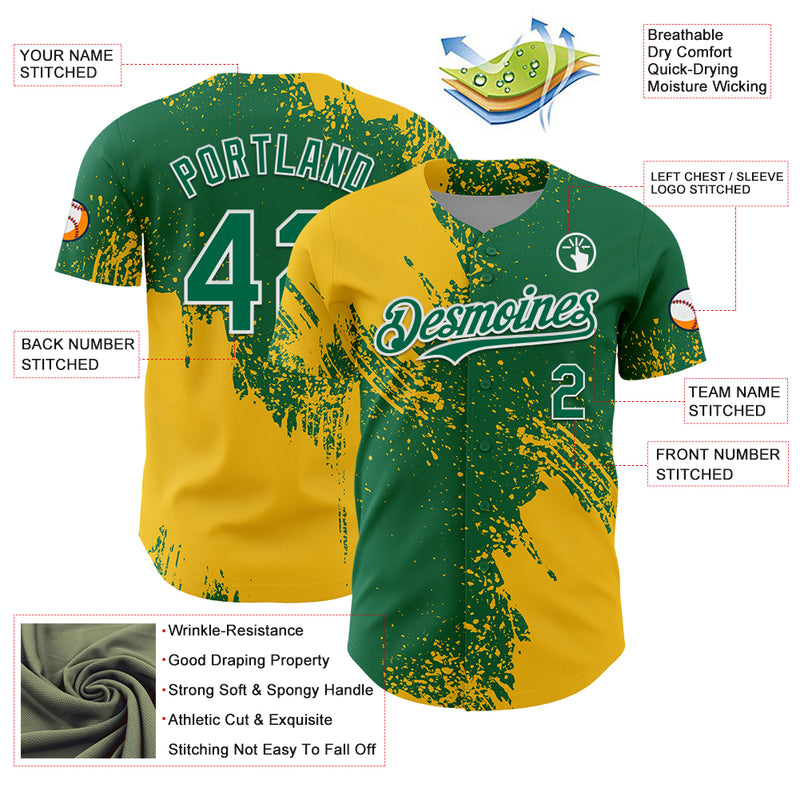 Custom Yellow Kelly Green-White 3D Pattern Design Abstract Brush Stroke Authentic Baseball Jersey