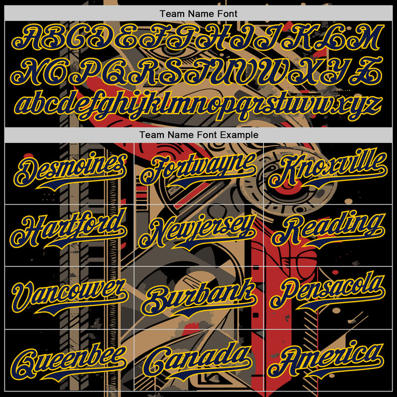 Custom Black Navy-Yellow 3D Pattern Design Burner Costumes Abstract Shape Authentic Baseball Jersey