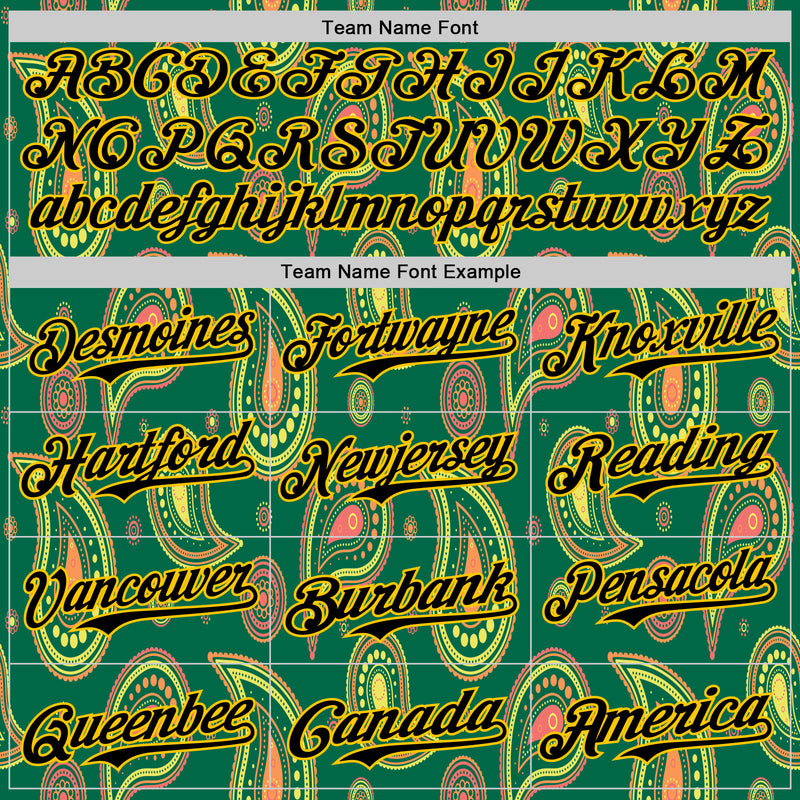 Custom Kelly Green Black-Yellow 3D Pattern Design Burner Costumes Paisley Bandana Authentic Baseball Jersey
