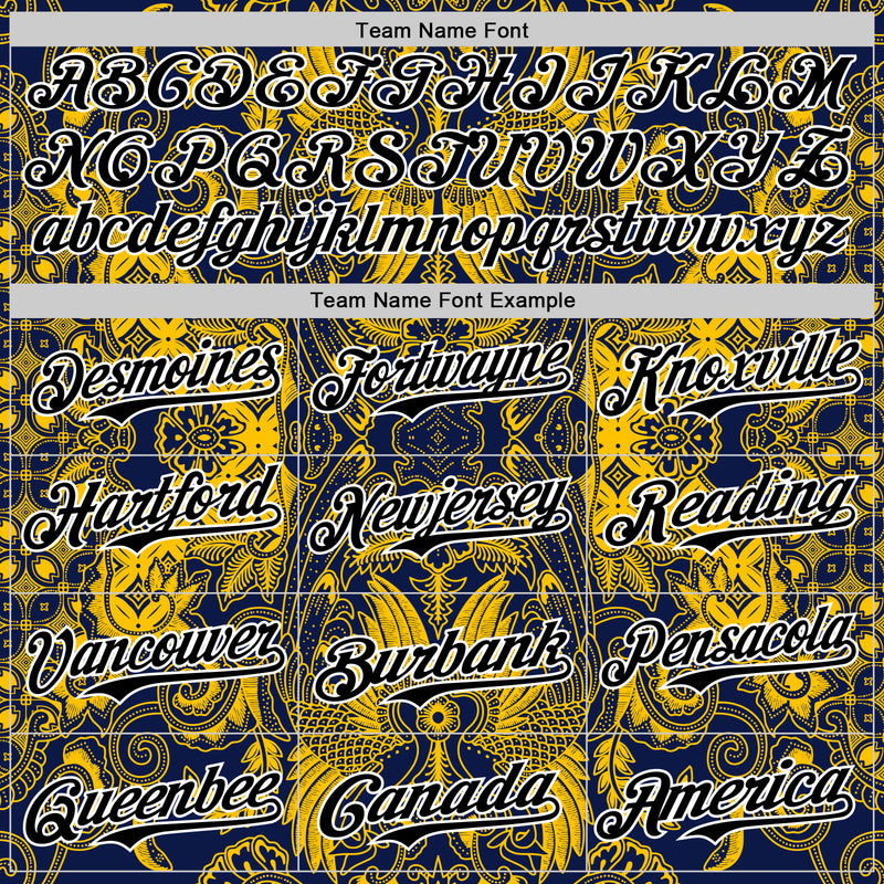 Custom Navy Black Yellow-White 3D Pattern Design Burner Costumes Paisley Authentic Baseball Jersey