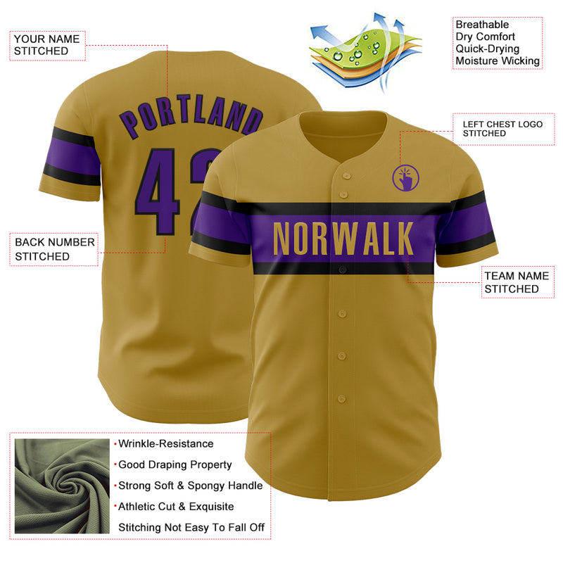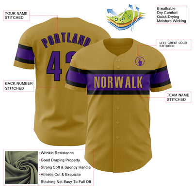 Custom Old Gold Purple-Black Authentic Baseball Jersey