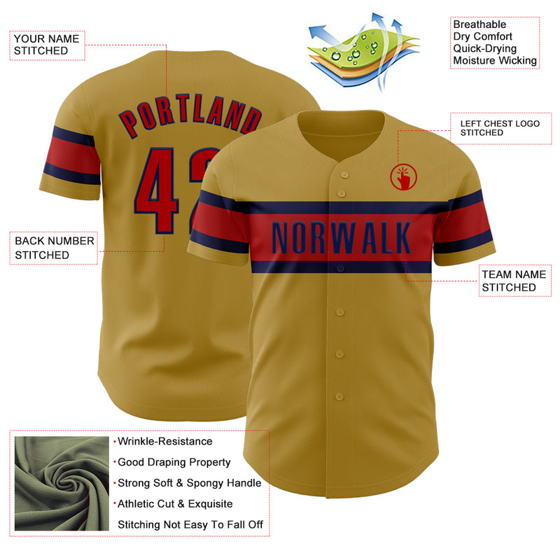 Custom Old Gold Red-Navy Authentic Baseball Jersey