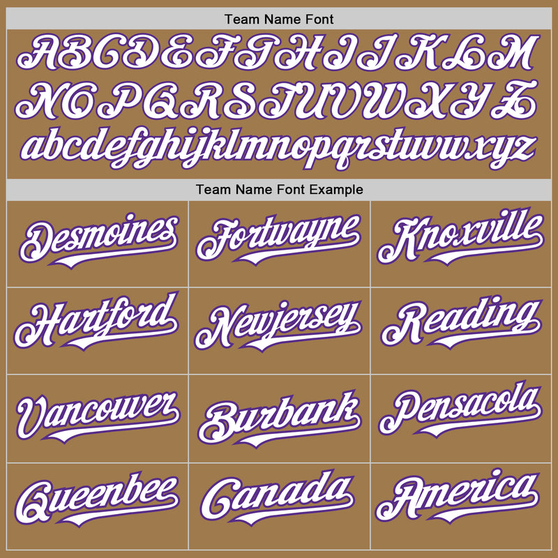 Custom Old Gold White-Purple 3 Colors Arm Shapes Authentic Baseball Jersey