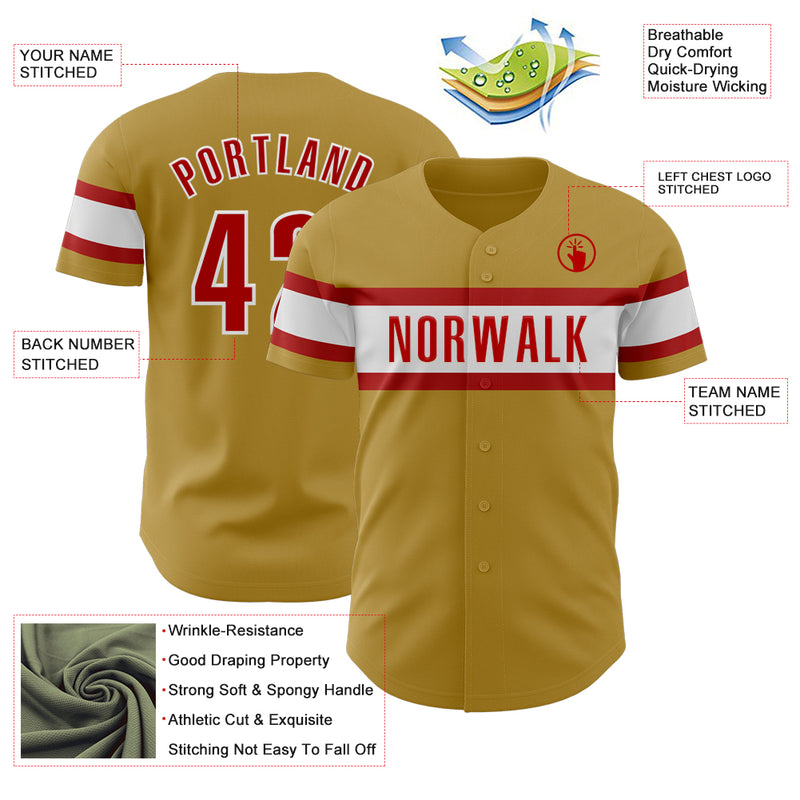 Custom Old Gold Red-White Authentic Baseball Jersey