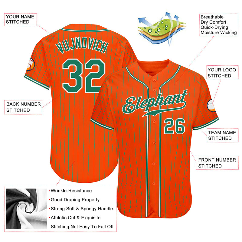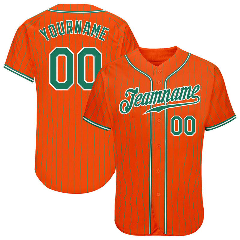 Custom Orange Kelly Green Pinstripe Kelly Green-White Authentic Baseball Jersey