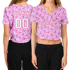 Custom Women's Pink White Breast Cancer 3D V-Neck Cropped Baseball Jersey