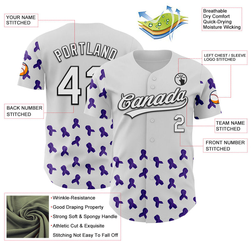 Custom White Purple-Black 3D Gynecological Cancer Ribbon Authentic Baseball Jersey