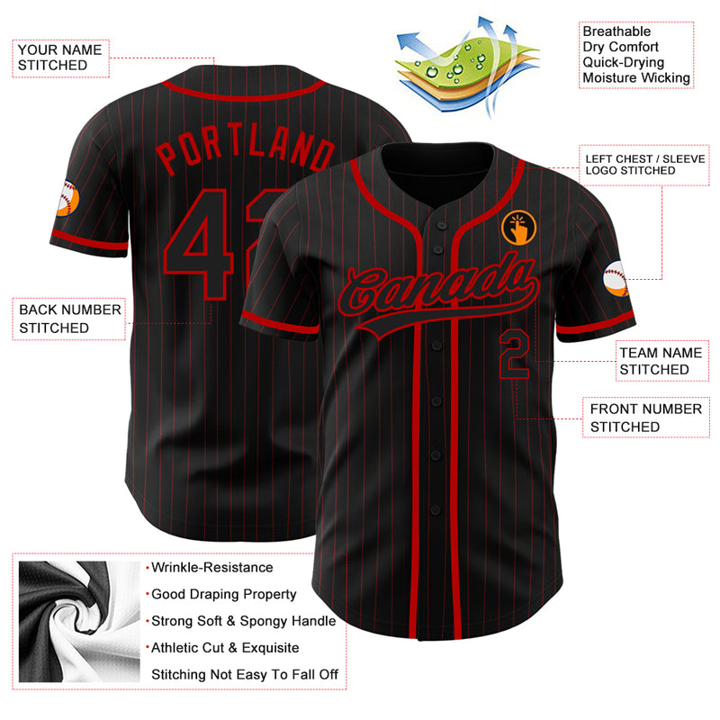 Custom Black Red Pinstripe Black Authentic Baseball Jersey