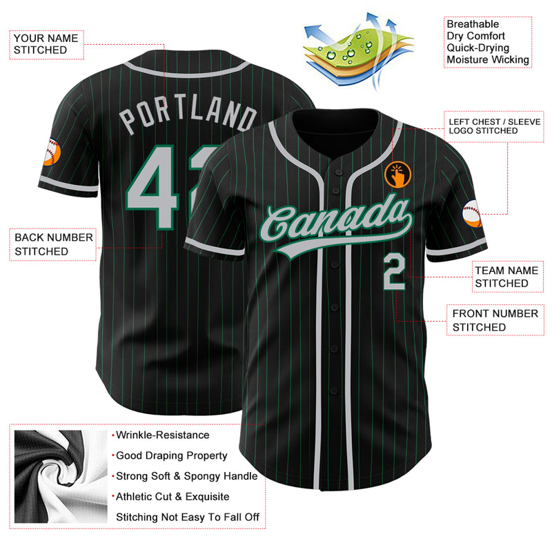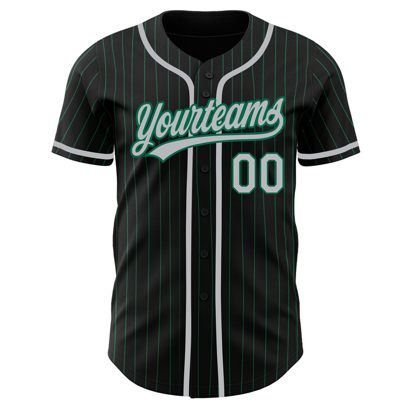Custom Black Kelly Green Pinstripe Gray Authentic Baseball Jersey
