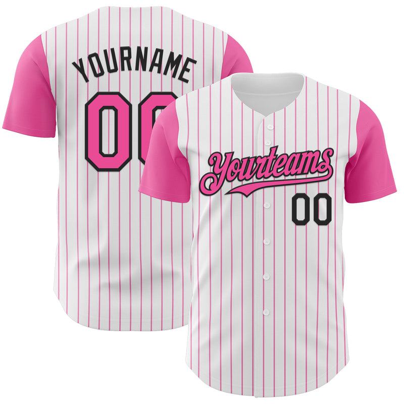Custom White Pink Pinstripe Black Authentic Two Tone Baseball Jersey