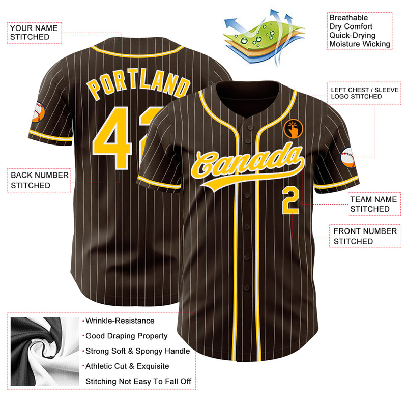 Custom Brown White Pinstripe Gold Authentic Baseball Jersey