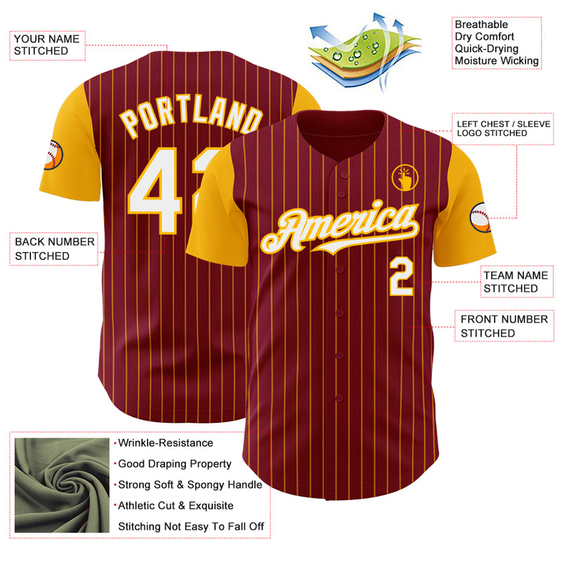Custom Crimson Gold Pinstripe White Authentic Two Tone Baseball Jersey
