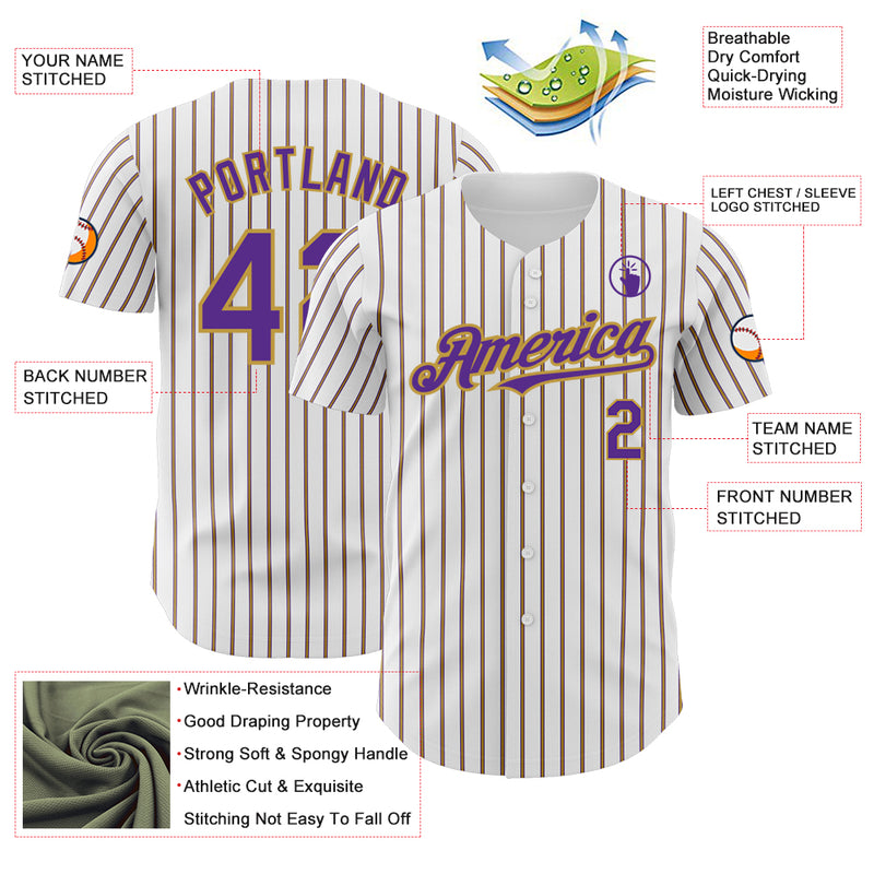 Custom White (Purple Old Gold Pinstripe) Purple-Old Gold Authentic Baseball Jersey