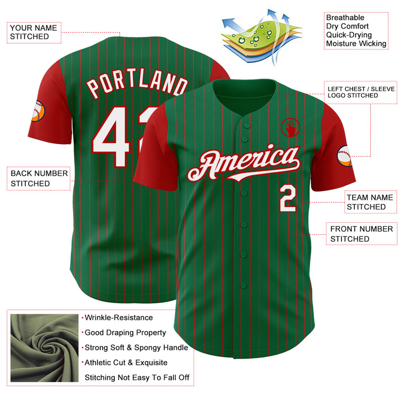 Custom Kelly Green Red Pinstripe White Authentic Two Tone Baseball Jersey