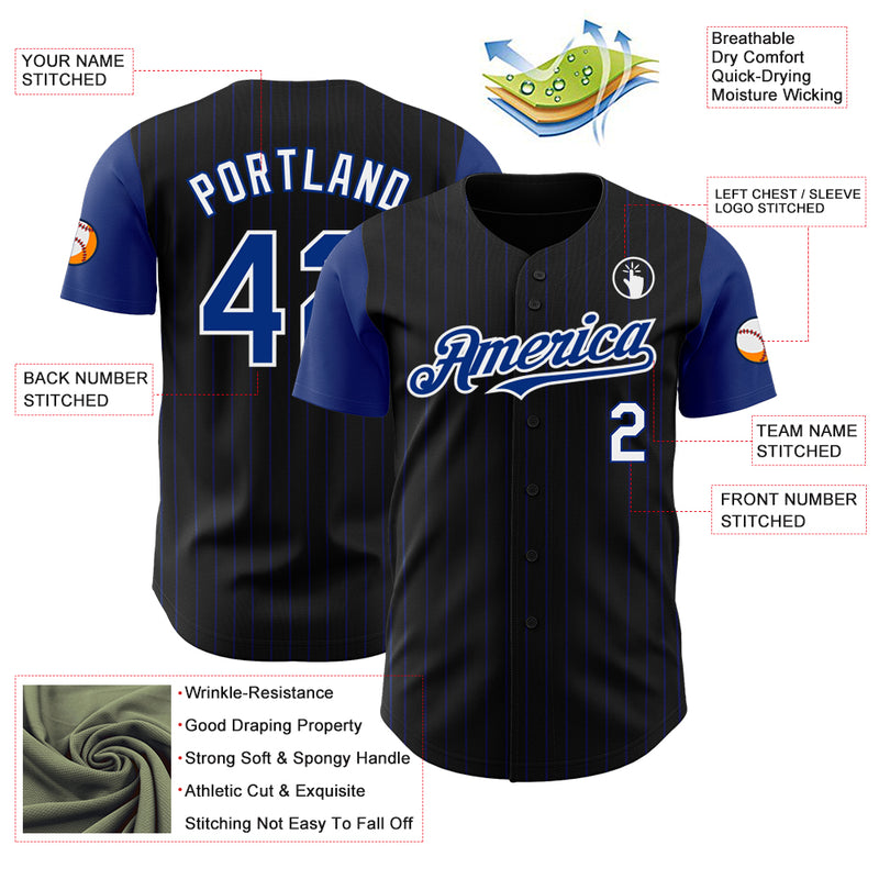 Custom Black Royal Pinstripe White Authentic Two Tone Baseball Jersey