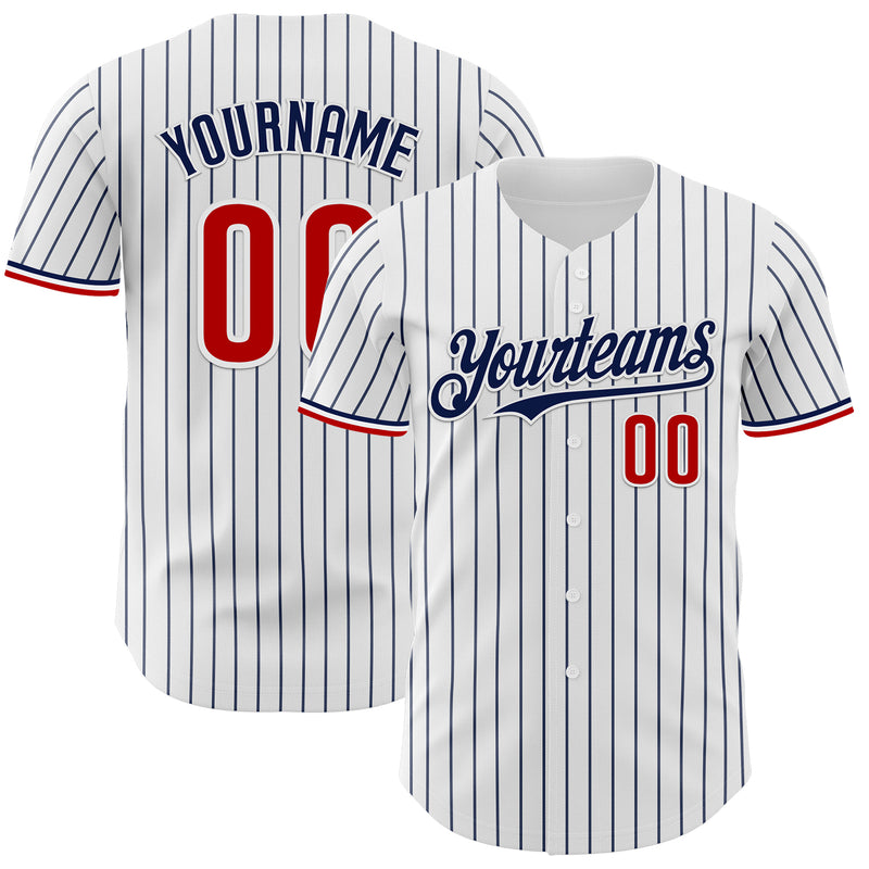 Custom White Navy Pinstripe Red Authentic Baseball Jersey