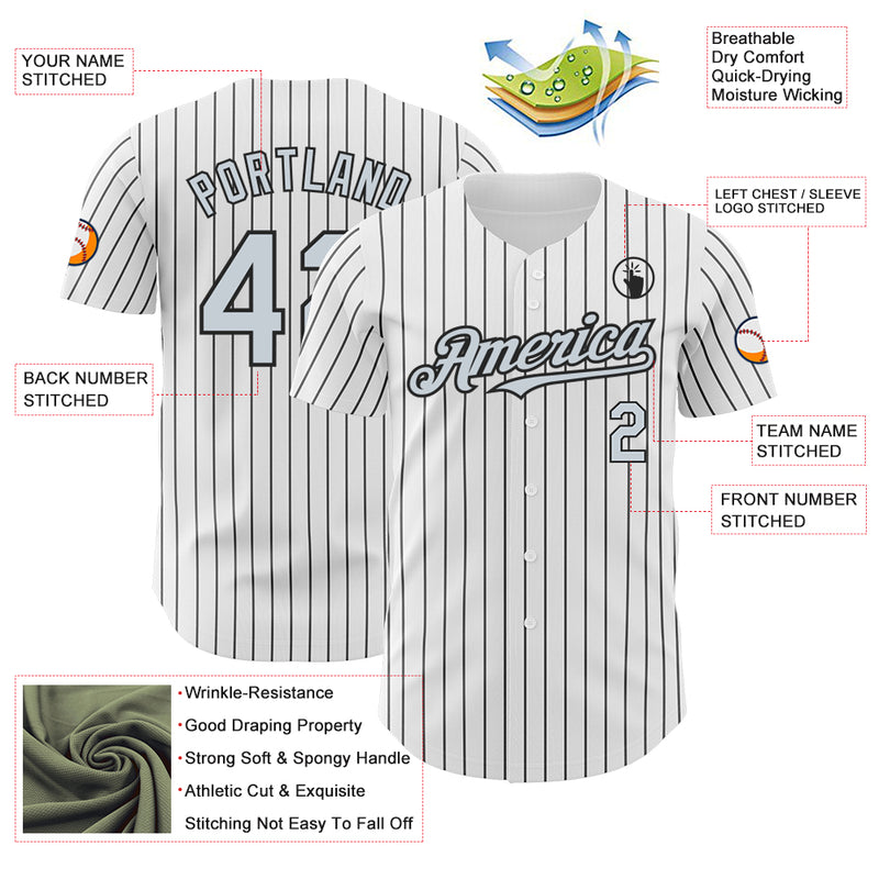Custom White Black Pinstripe Silver Authentic Baseball Jersey