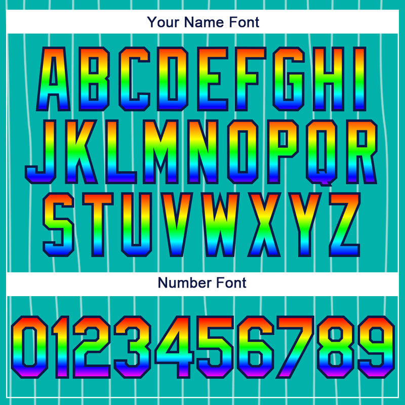 Custom Aqua White Pinstripe Rainbow Navy-Pink 3D Authentic Baseball Jersey