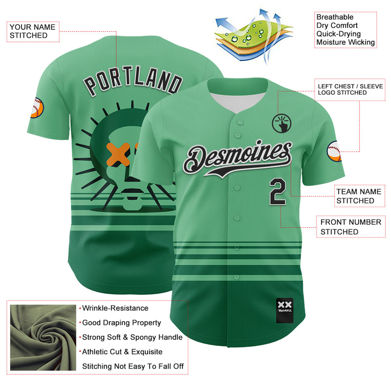 Custom Pea Green Black-White 3D Revzzz Greena Authentic Baseball Jersey