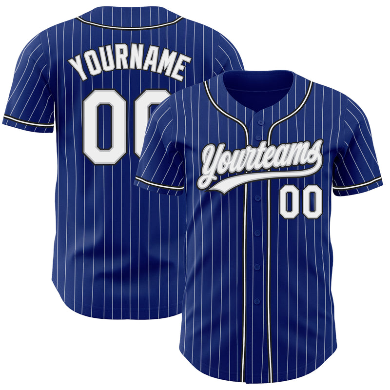 Custom Royal White Pinstripe White Gray-Black Authentic Baseball Jersey
