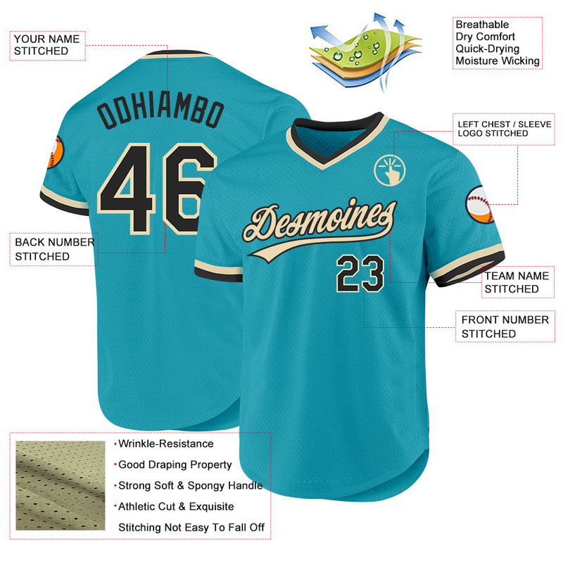 Custom Teal Black-Cream Authentic Throwback Baseball Jersey