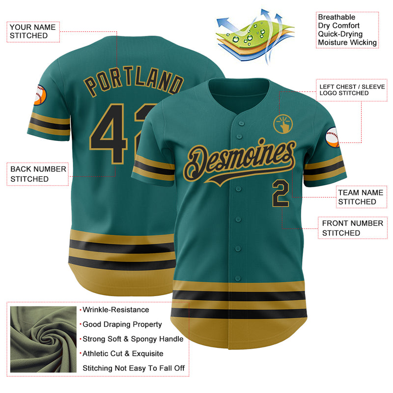 Custom Teal Black-Old Gold Line Authentic Baseball Jersey