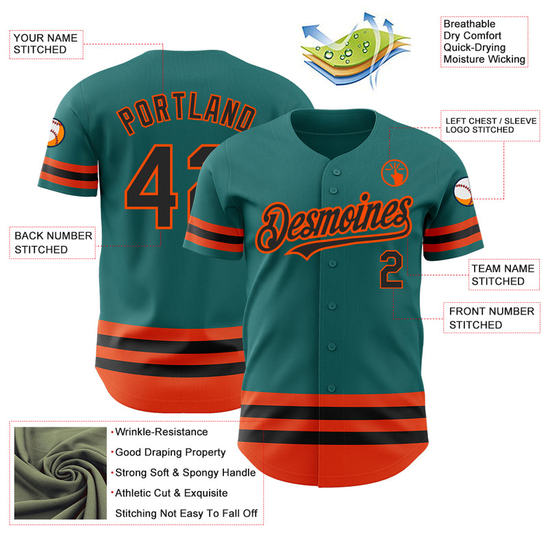 Custom Teal Black-Orange Line Authentic Baseball Jersey