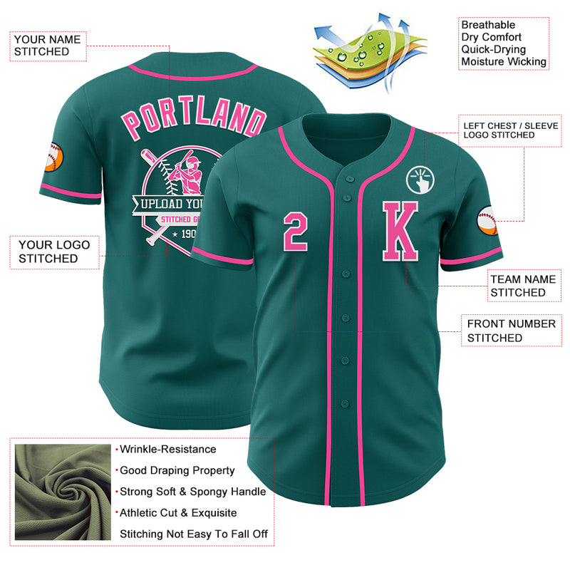 Custom Teal Pink-White Authentic Baseball Jersey