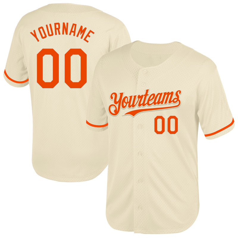 Custom Cream Orange Mesh Authentic Throwback Baseball Jersey