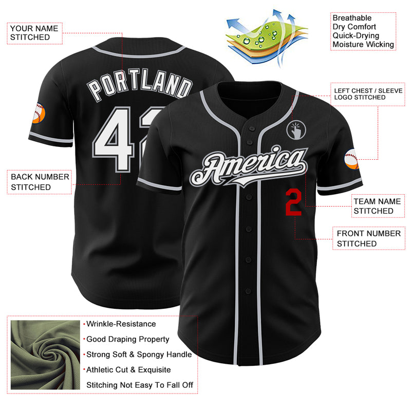 Custom Black White Gray-Red Authentic Baseball Jersey