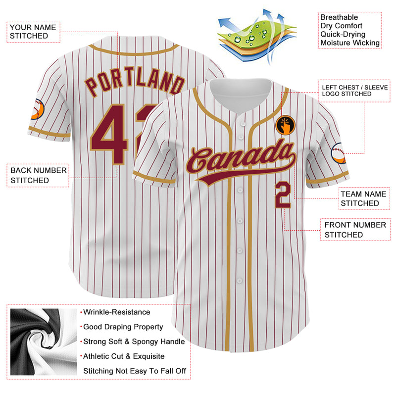 Custom White Crimson Pinstripe Crimson-Old Gold Authentic Baseball Jersey