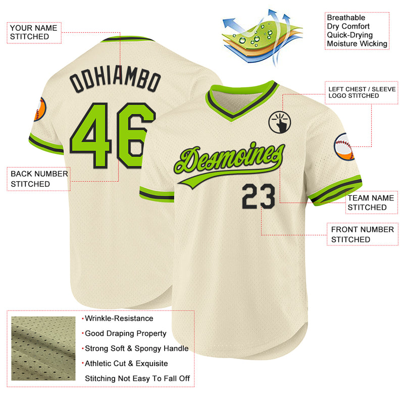 Custom Cream Neon Green-Black Authentic Throwback Baseball Jersey