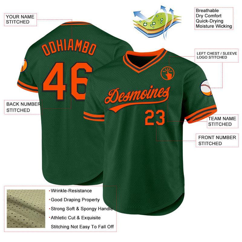 Custom Green Orange-Black Authentic Throwback Baseball Jersey