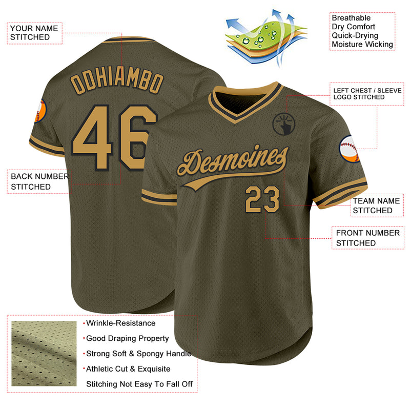 Custom Olive Old Gold-Black Authentic Throwback Salute To Service Baseball Jersey
