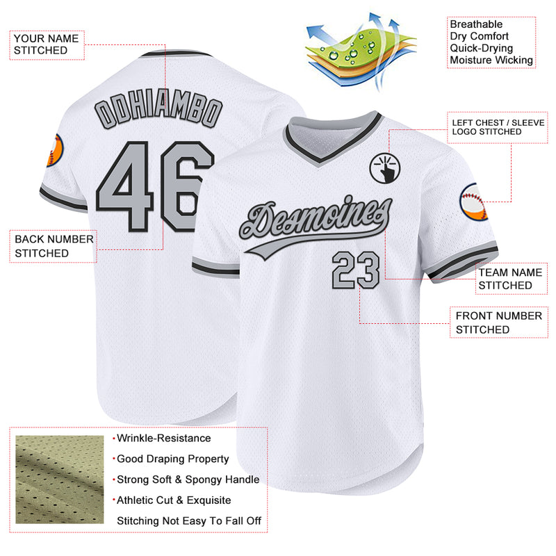 Custom White Gray-Black Authentic Throwback Baseball Jersey