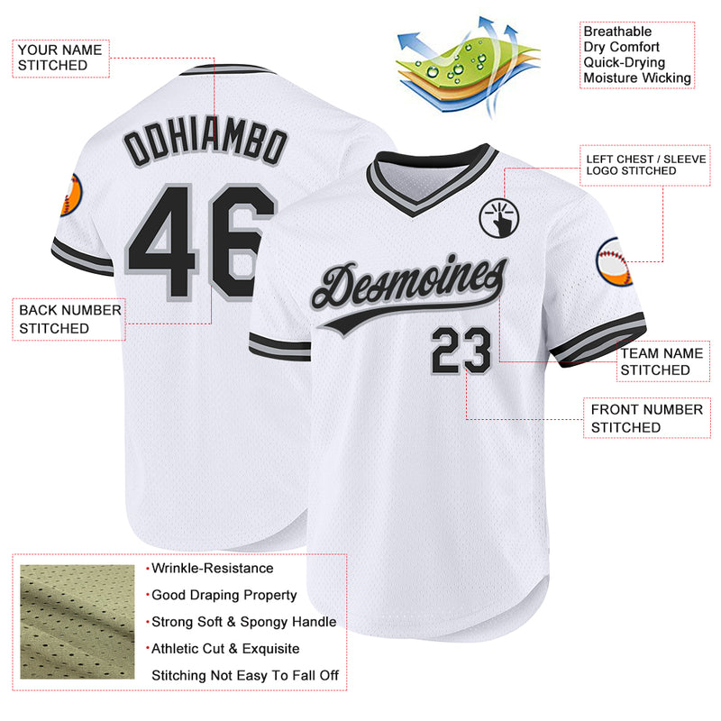 Custom White Black-Gray Authentic Throwback Baseball Jersey