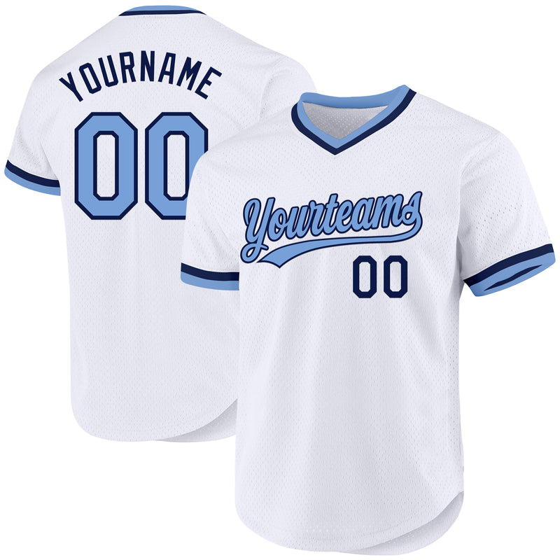 Custom White Light Blue-Navy Authentic Throwback Baseball Jersey