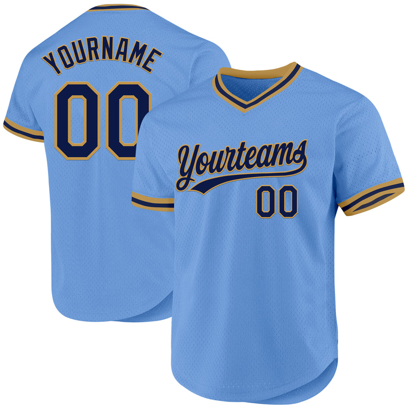 Custom Light Blue Navy-Old Gold Authentic Throwback Baseball Jersey