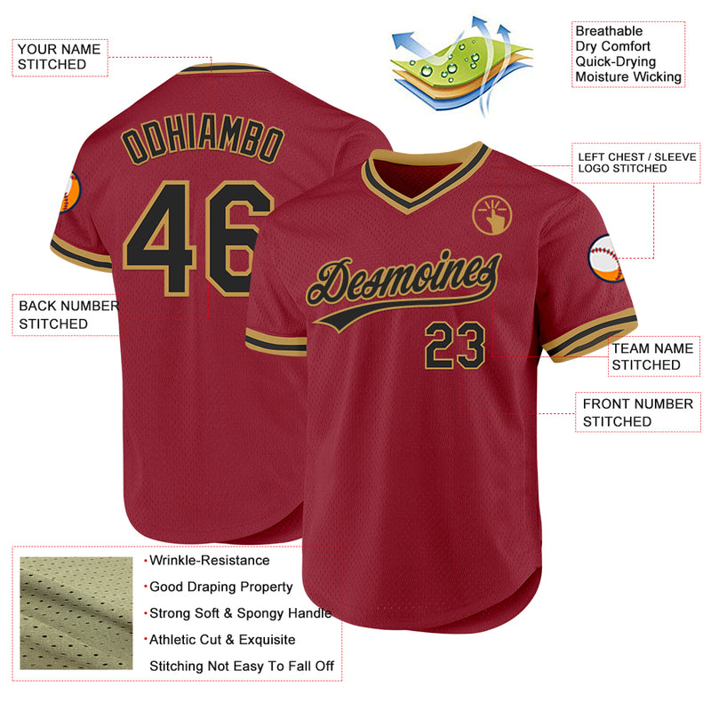 Custom Maroon Black-Old Gold Authentic Throwback Baseball Jersey