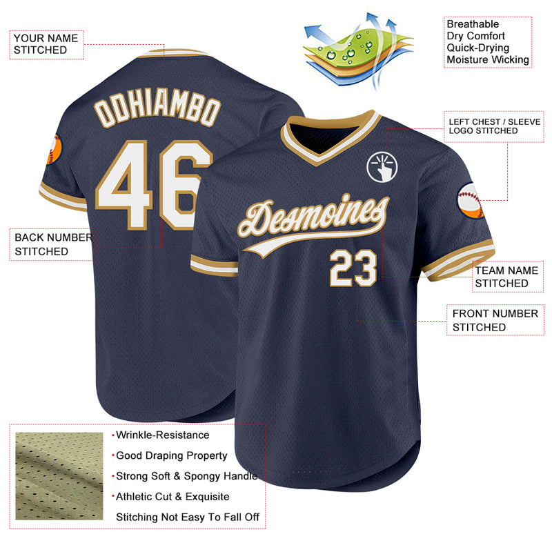 Custom Navy White-Old Gold Authentic Throwback Baseball Jersey