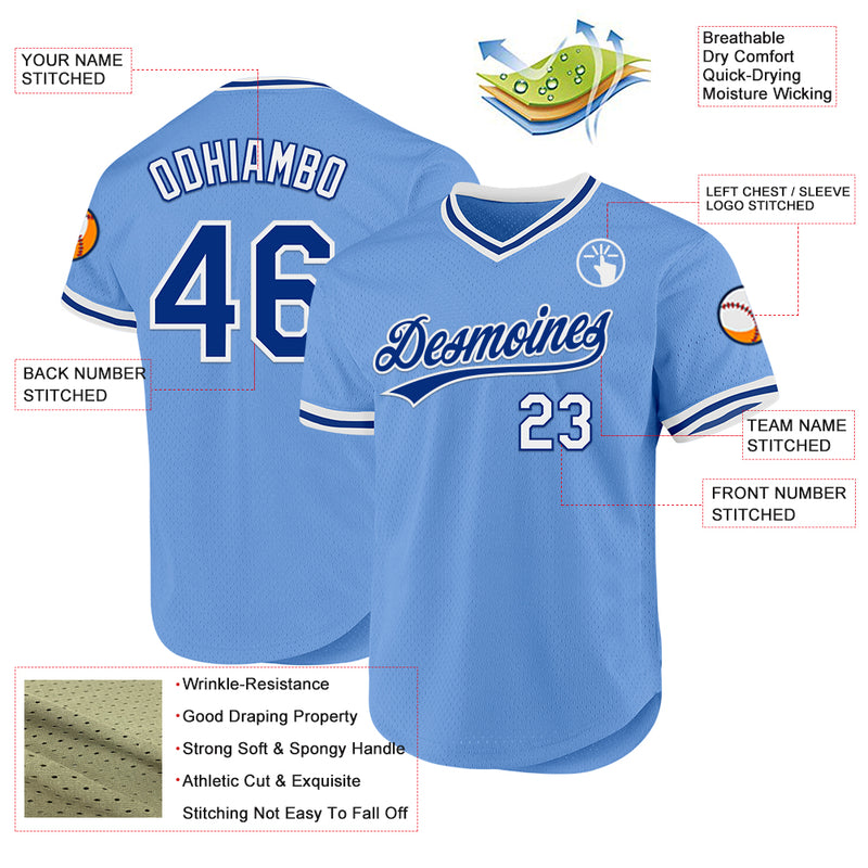 Custom Light Blue Royal-White Authentic Throwback Baseball Jersey